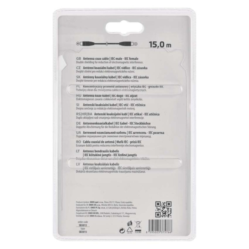Anténny koaxiálny kábel tienený 15m - rovná vidlica