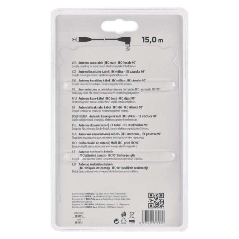 Anténny koaxiálny kábel tienený 15m - uhlová vidlica
