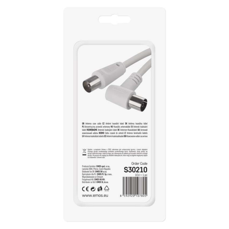 Anténny koaxiálny kábel tienený 2,5m – uhlová vidlica