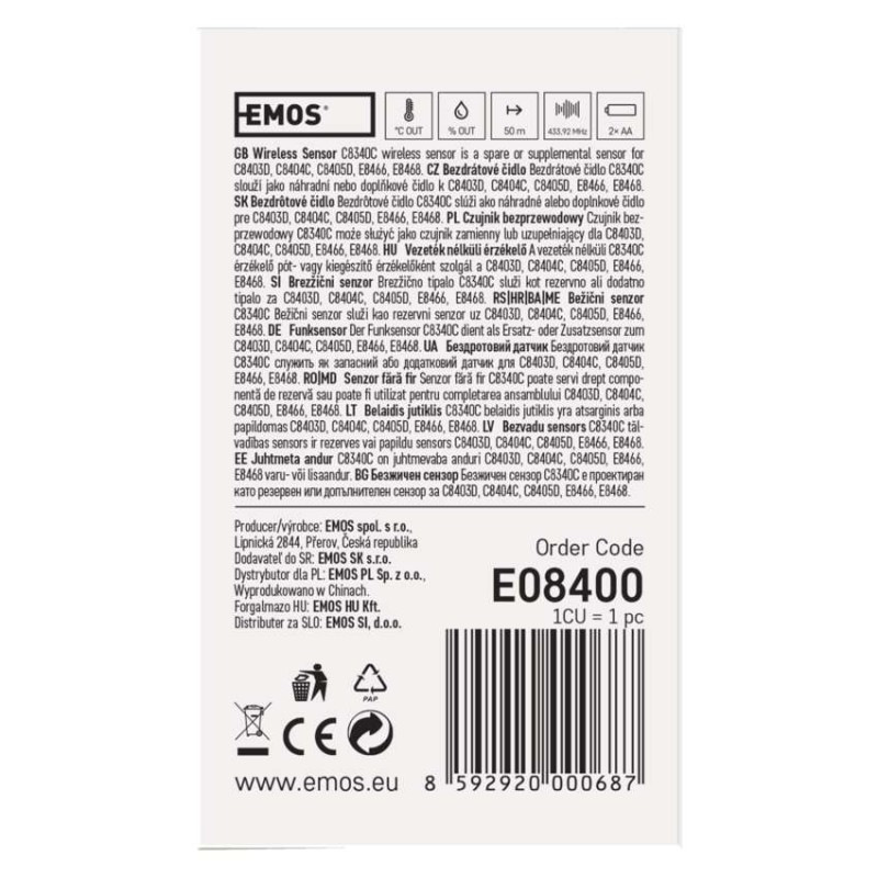 Bezdrôtové čidlo pre meteostanicu C8403D, E8468 a ďalšie