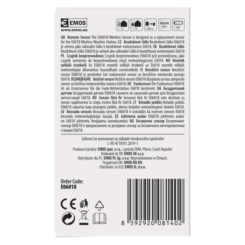 Bezdrôtové čidlo pre meteostanicu E6018, E6016