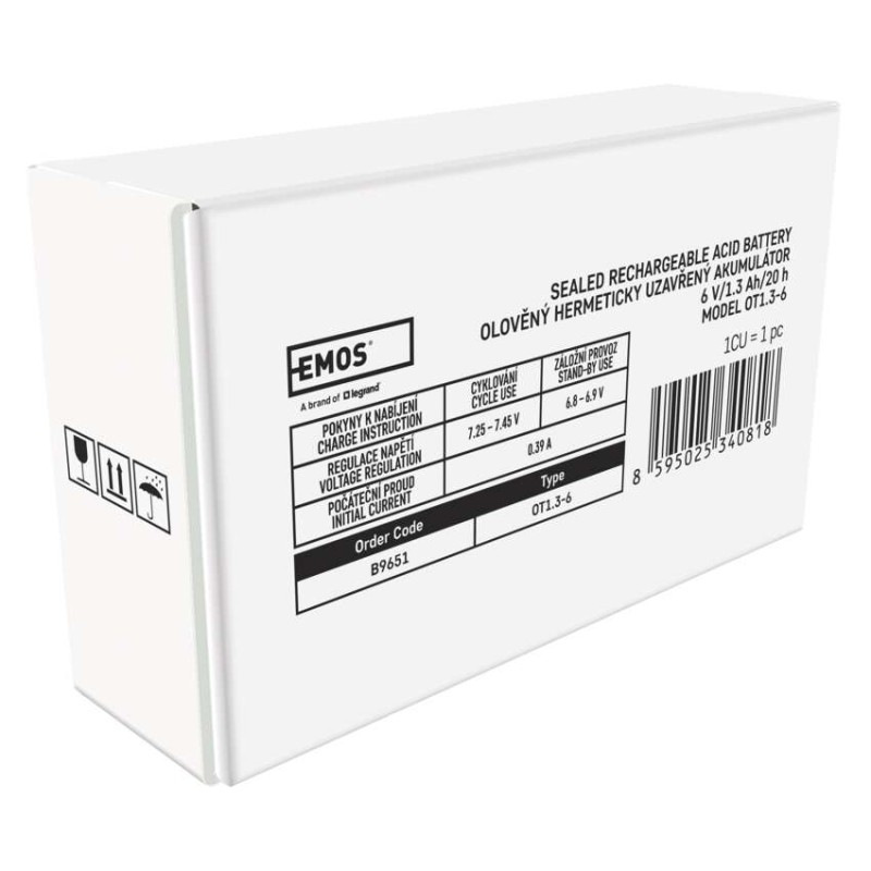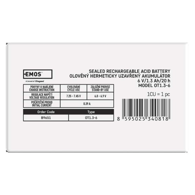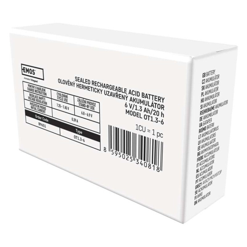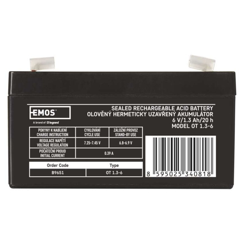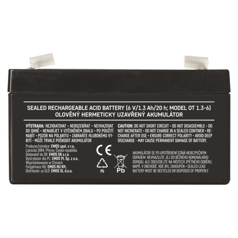Bezúdržbový olovený akumulátor 6 V/1,3 Ah, faston 4,7 mm
