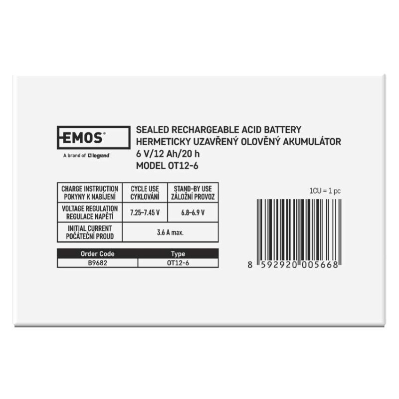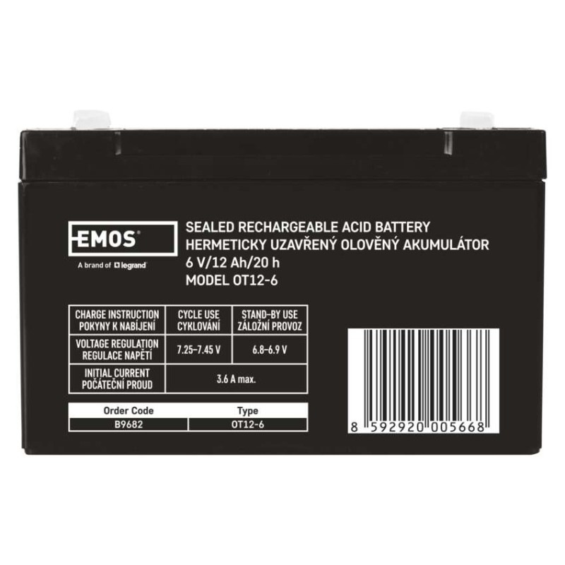 Bezúdržbový olovený akumulátor 6 V/12 Ah, faston 4,7 mm