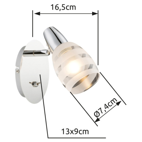 Bočné svietidlo, chróm, satinované sklo, vypínač, ŠxV:90x165, H: 160, bez žiarovky 1xE14, max. 40W 2