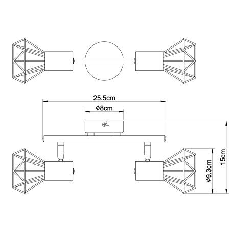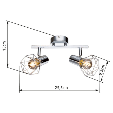Bočné svietidlo, kov chróm, DXV: 255x150, bez žiaroviek 2xE14, max. 40W 230V.