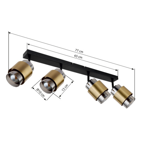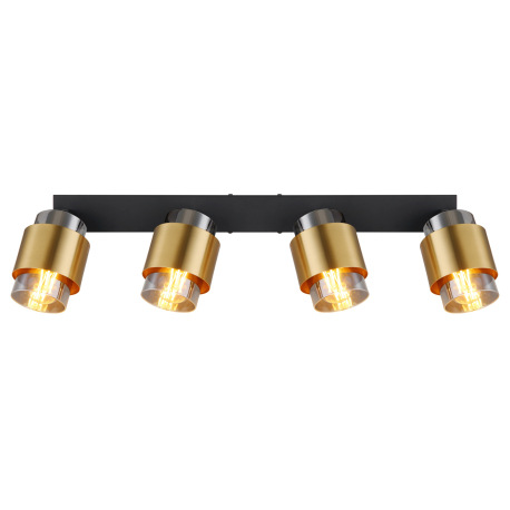 Bodové svietidlo kov čierny matný, sklo dymové, mosadzný krúžok, DxŠxV: 650x100x125mm, bez žiaroviek
