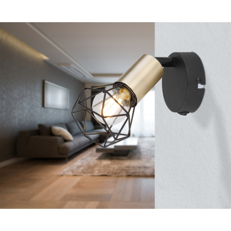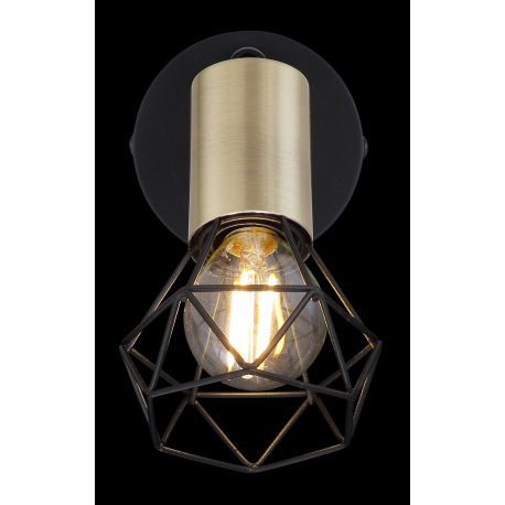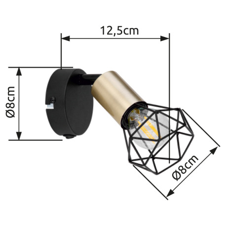Bodové svietidlo, kov čierny, starožitná mosadz, vypínač, ŠxV: 80x125, H: 90, bez žiarovky 1xE14, ma