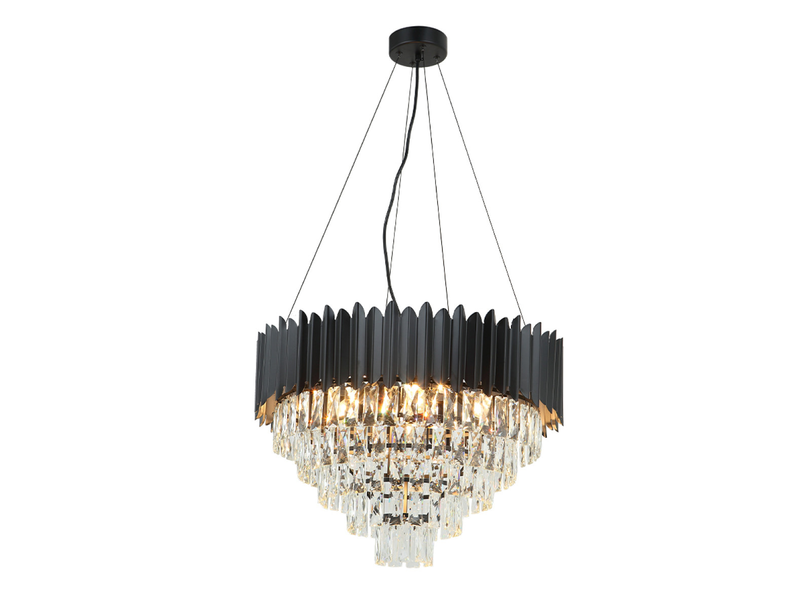 Toto výnimočné svietidlo spája moderný štýl s precíznym remeselným spracovaním. Telo svietidla je vyrobené z kvalitného kovu v elegantnom odtieni čiernej farby, pričom jeho povrch je bohato zdobený jemne brúsenými kryštálmi, ktoré nádherne lámu svetlo a vytvárajú jedinečný svetelný efekt.