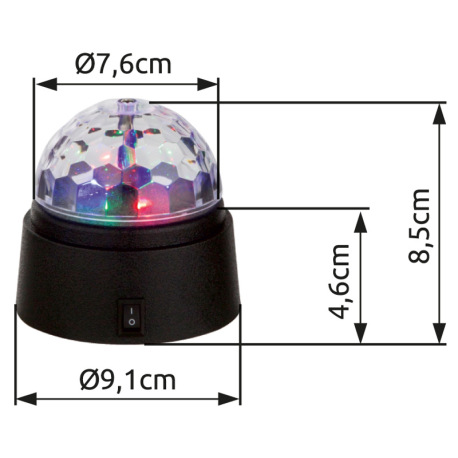Dekoratívne svietidlo, čierny plast, priehľadný plast, disko svetlo s krištáľovými hviezdami, vypína