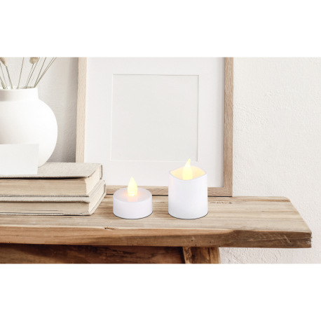 Dekoratívne svietidlo, plast biely/satinovaný, vypínač, efekt ohňa, vrátane bat. 1xCR2032 210mAh, sa