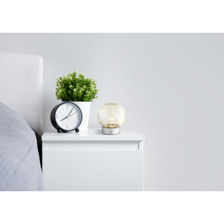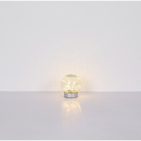 Dekoratívne svietidlo, plast strieborný matný, sklenená guľa číra s efektom popraskaného skla, posuv