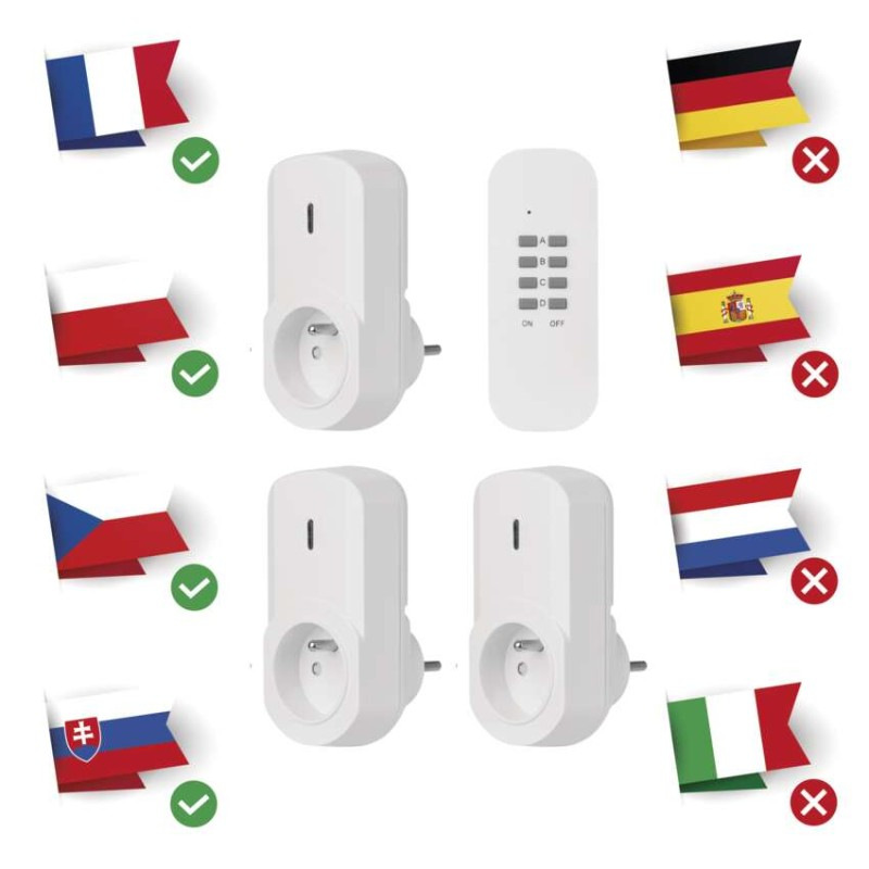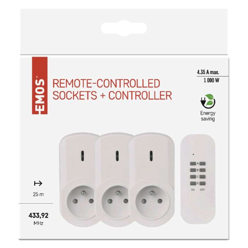 produkt: diaľkovo ovládané zásuvky, 3 zásuvky + 1 × diaľkový ovládač