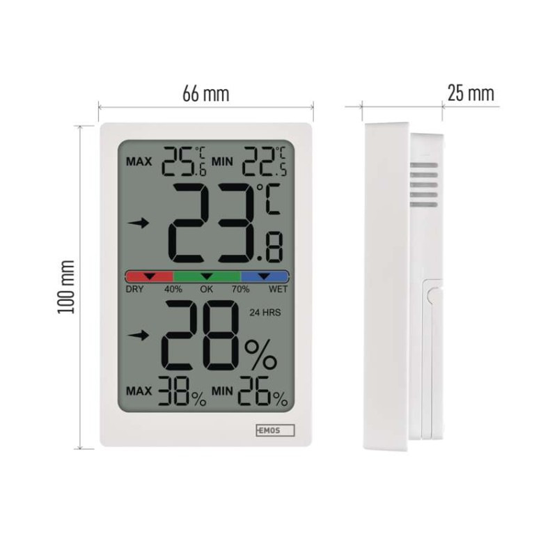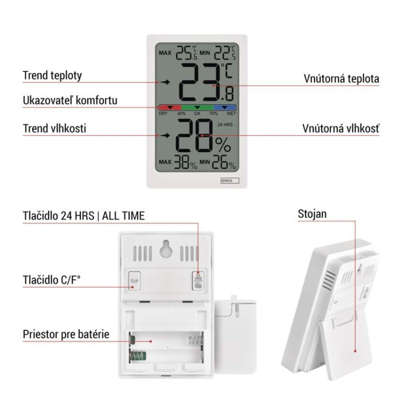 vnútorná vlhkosť: 1 % až 99 % RV, rozlíšenie 1 %