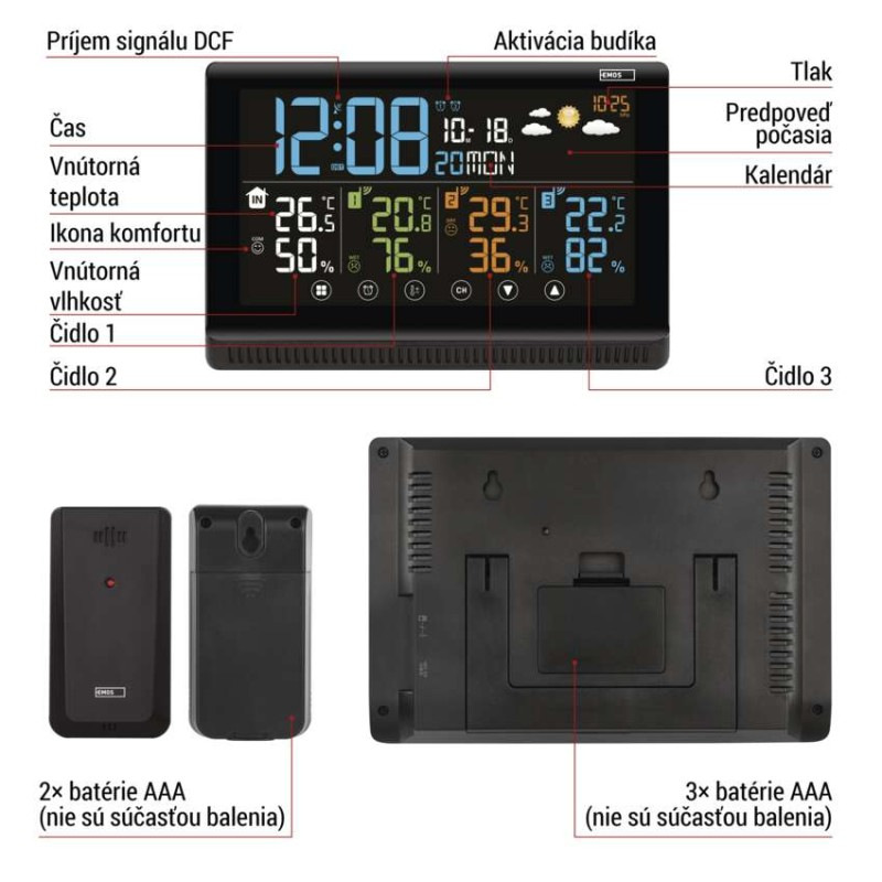 napájanie stanice: 3× 1,5 V AAA (nie sú súčasťou balenia)