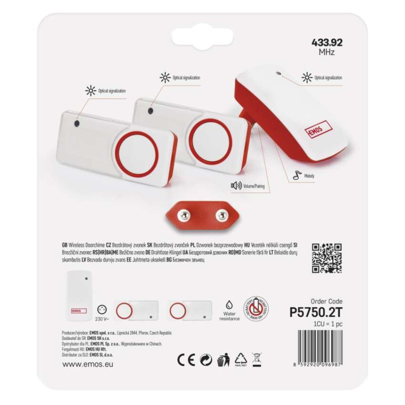 Domový bezdrôtový zvonček bez baterie P5750.2T do zásuvky, s 2 tlačidlami