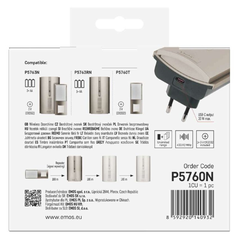 Domový bezdrôtový zvonček P5760N do zásuvky, možnosť predĺženia signálu