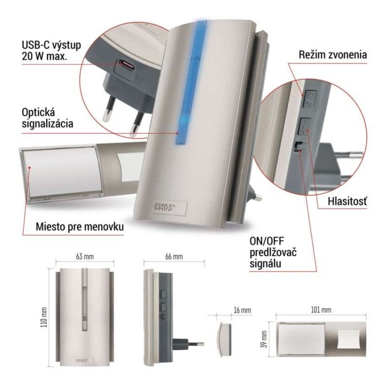špeciálne funkcie: USB–C výstup - PD 20W, funkcia repeater - umožňuje predĺžiť dosah tlačidla o niekoľko stoviek metrov navyše