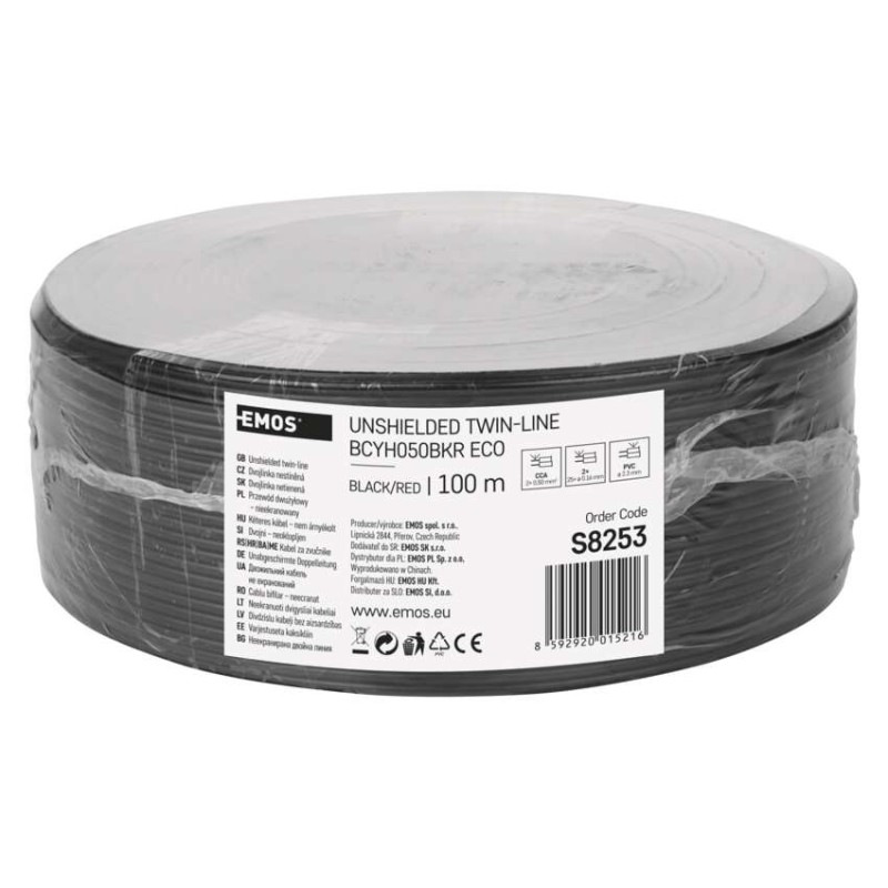 Dvojlinka ECO 2×0,5mm, čierno/červená, 100m