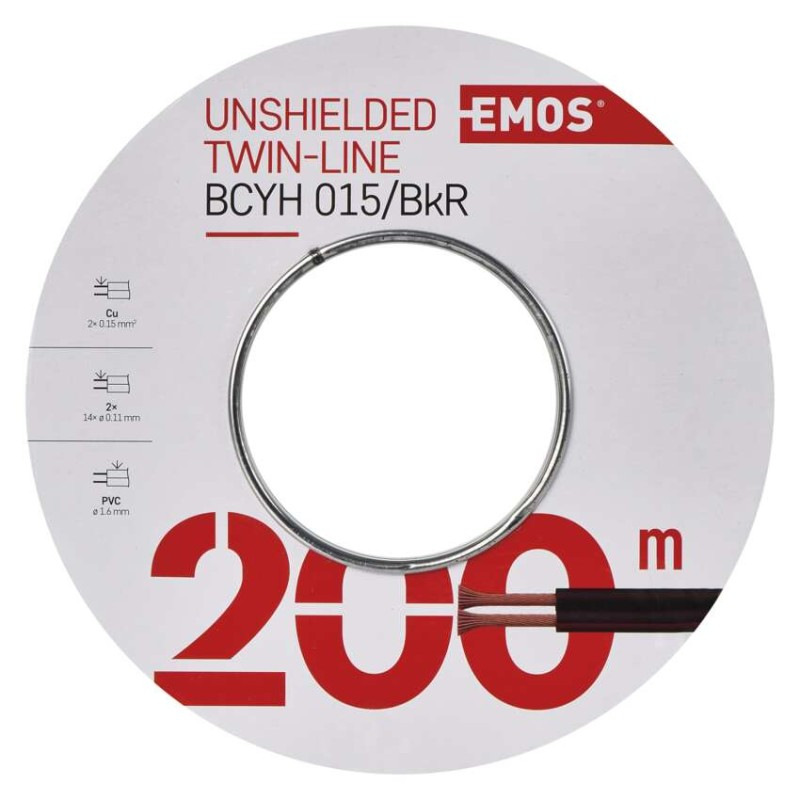 Dvojlinka netienená 2×0,15mm čierno/červená, 200m