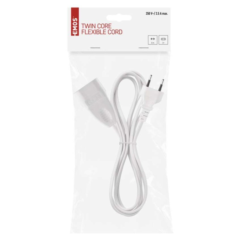 Dvojžilový pohyblivý prívod 3 m / 1 zásuvka / biely / PVC / 0,75 mm2