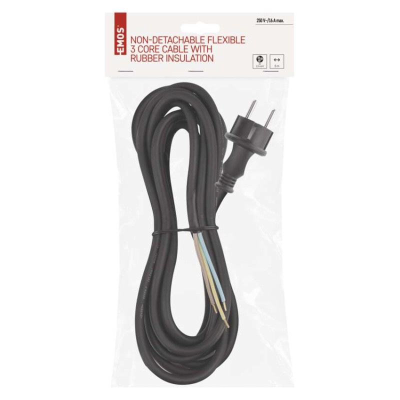 Flexo šnúra gumová 3× 1,5mm2, 5m, čierna