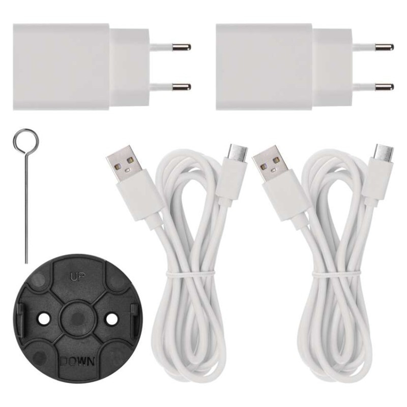 obsah balenia: 1× kamera, 1× monitor, 2× napájací adaptér, 2× kábel USB, 1× držiak, 1× skrutky, 1× resetovací kolík, 1× príručka