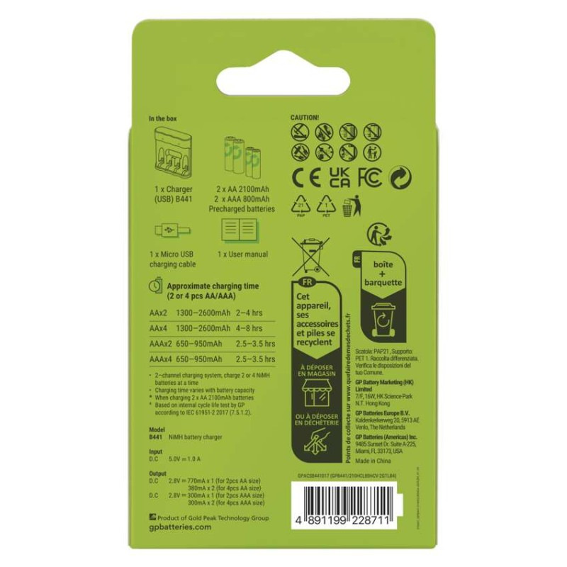 GP nabíjačka batérií Recharge B441 + 2×AA Recharge 2100mAh + 2×AAA Recharge 800 mAh