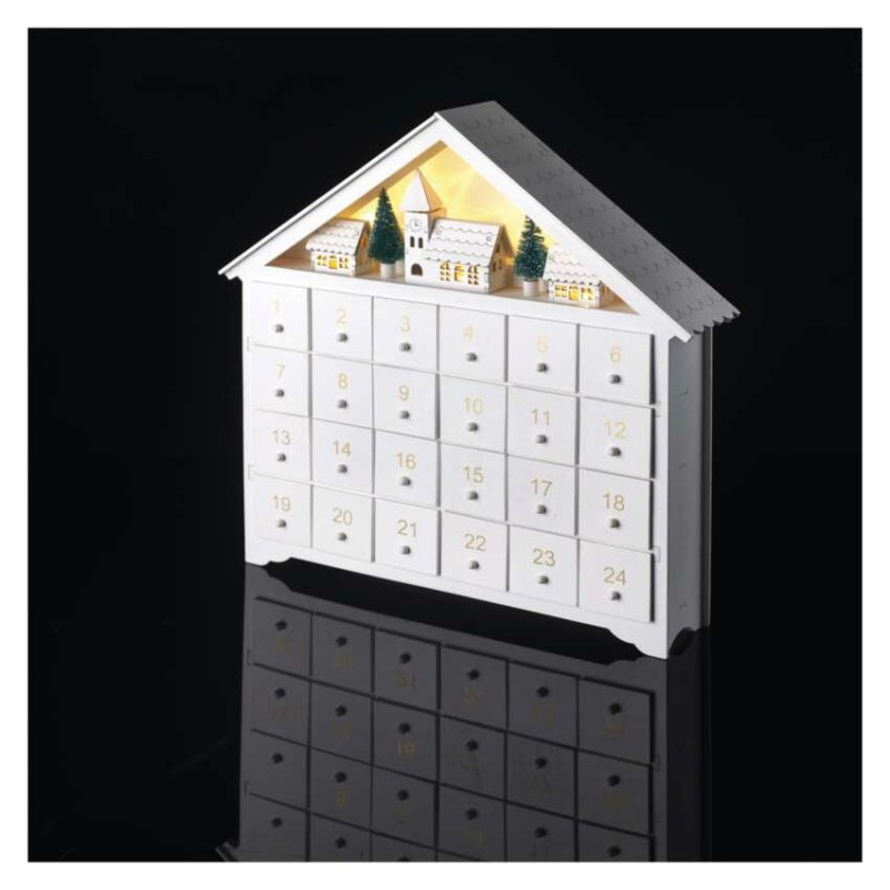 LED adventný kalendár drevený, 35x33 cm, 2x AA, vnútorný, teplá biela, časovač