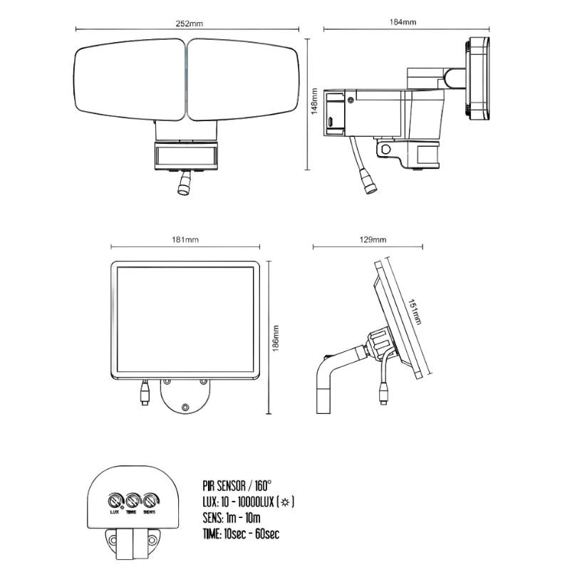 SENZOR 160°/ 1 - 10m / 10s - 60s / 10Lx - 10000Lx