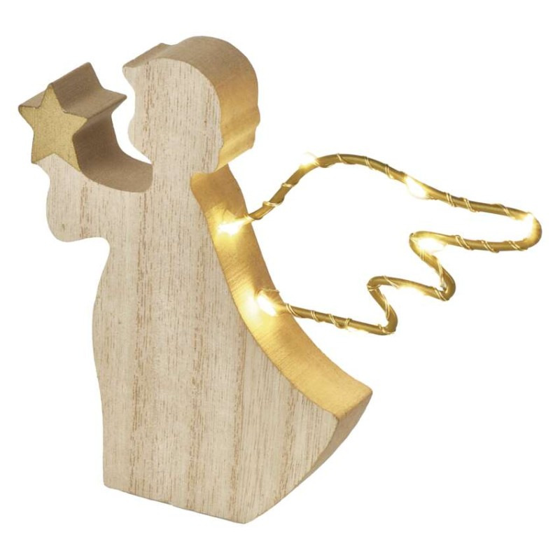 LED dekorácia drevená – anjel, 13 cm, 2x AAA, vnútorný, teplá biela, časovač