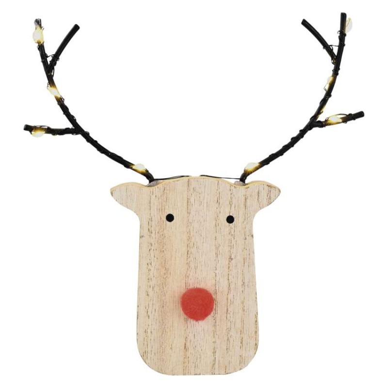 LED dekorácia drevená – sobík, 16 cm, 2x AAA, vnútorné, teplá biela, časovač, 12 ks, displ