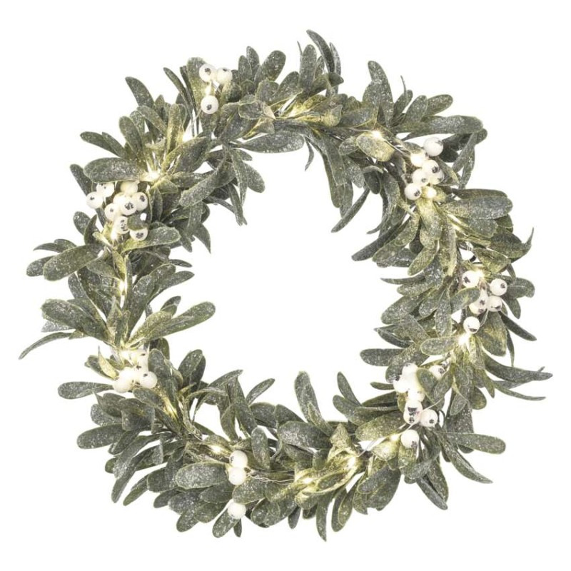 LED dekorácia - veniec z imela, 3x AA, teplá biela, časovač
