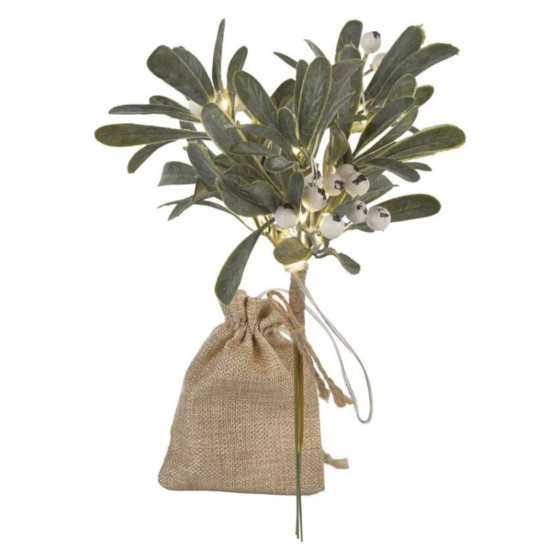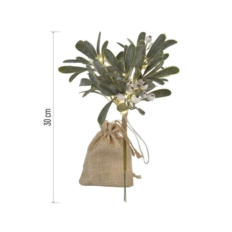 LED dekorácia - vetvička jmelí, 2x AA, teplá bílá, časovač