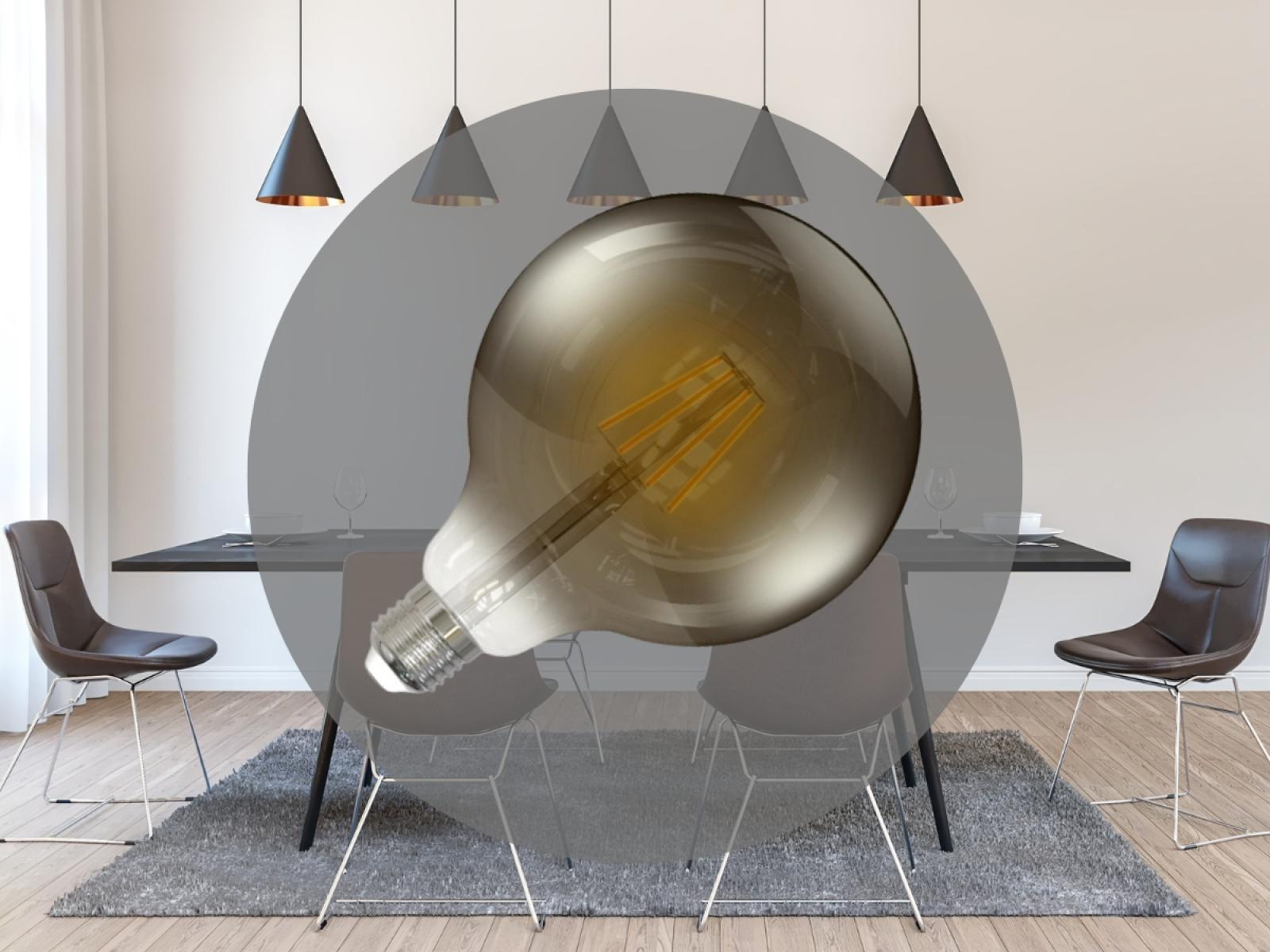- použité LED sú žlté filamenty - Filament s jemne čiernym sklom "SMOKE", čo vytvára veľmi príjemný vizuálny efekt, vhodný na dotvorenie atmosféry v miestnosti