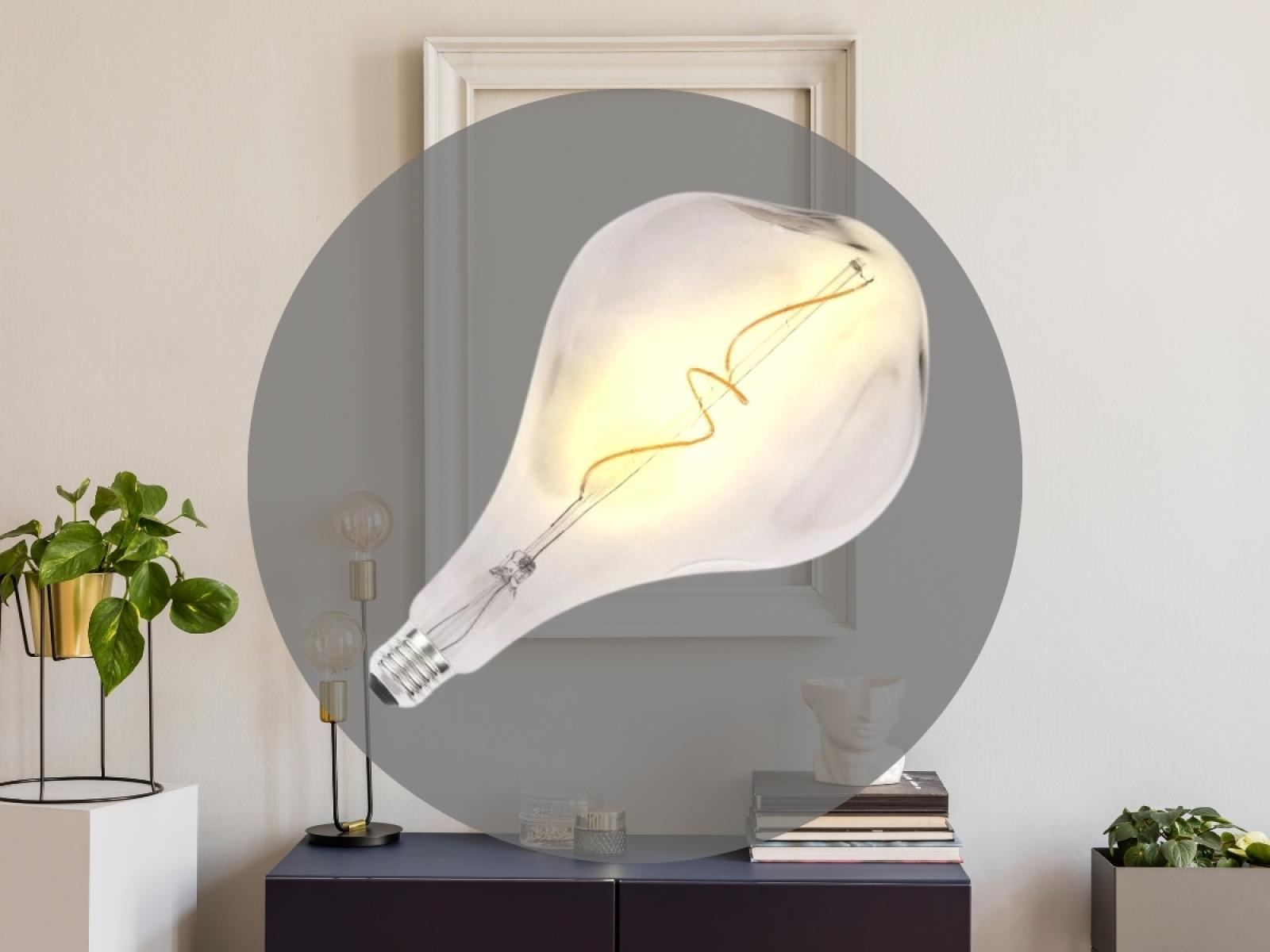 - použité LED sú filamenty so špeciálnym tvarom - Filament so zaujímavým tvarom a jemne čiernym sklom "SMOKE", ktorý vytvára veľmi príjemný vizuálny efekt, vhodný na dotvorenie atmosféry v miestnosti
