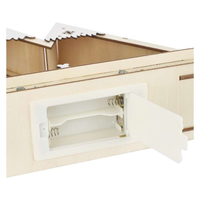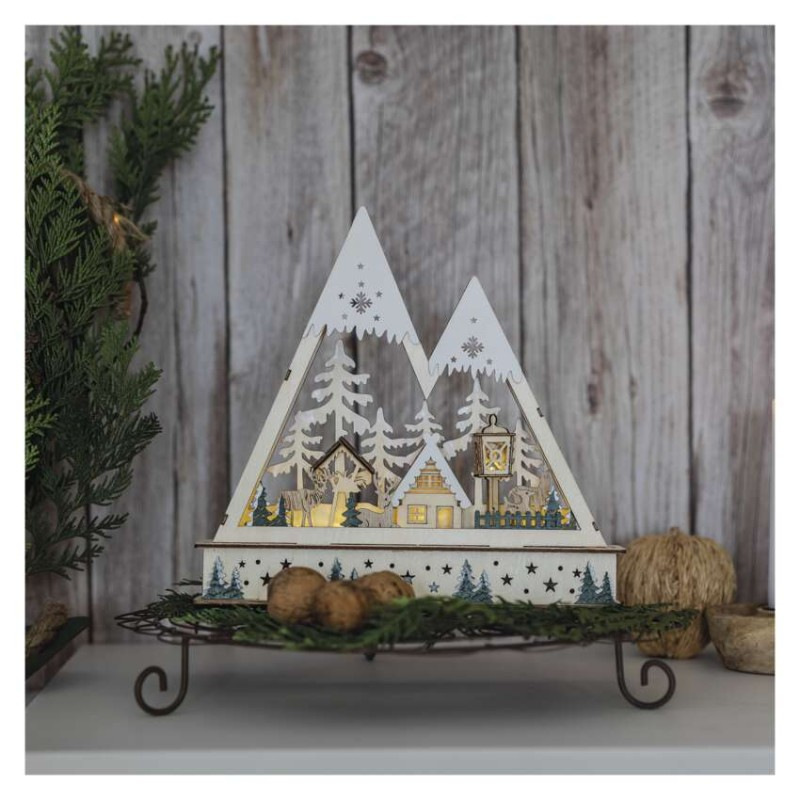 LED drevená vianočná krajina, 23,5 cm, 2x AA, vnútorný, teplá biela, časovač