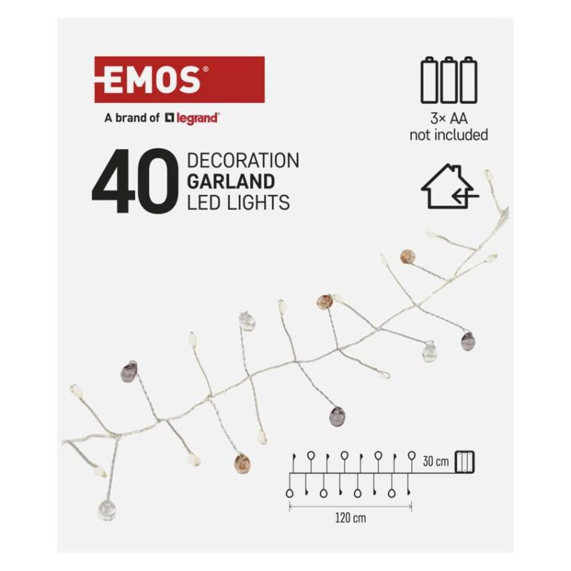 LED girlanda - kamienky, 1,2 m, 3x AA, vnútorné, teplá biela, časovač