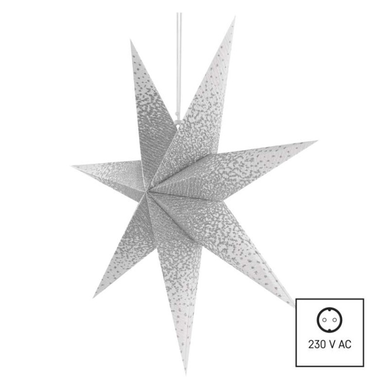 LED hviezda papierová závesná so striebornými trblietkami v strede, biela, 60 cm, vnútorná
