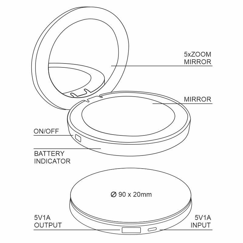 LED nabíjacie zrkadlo s powerbankou - ML01R