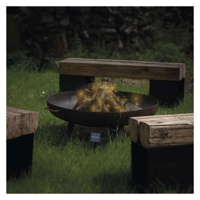 LED nano reťaz so solárnym panelom, medená, 12 m, vonkajšia aj vnút., teplá biela, časovač