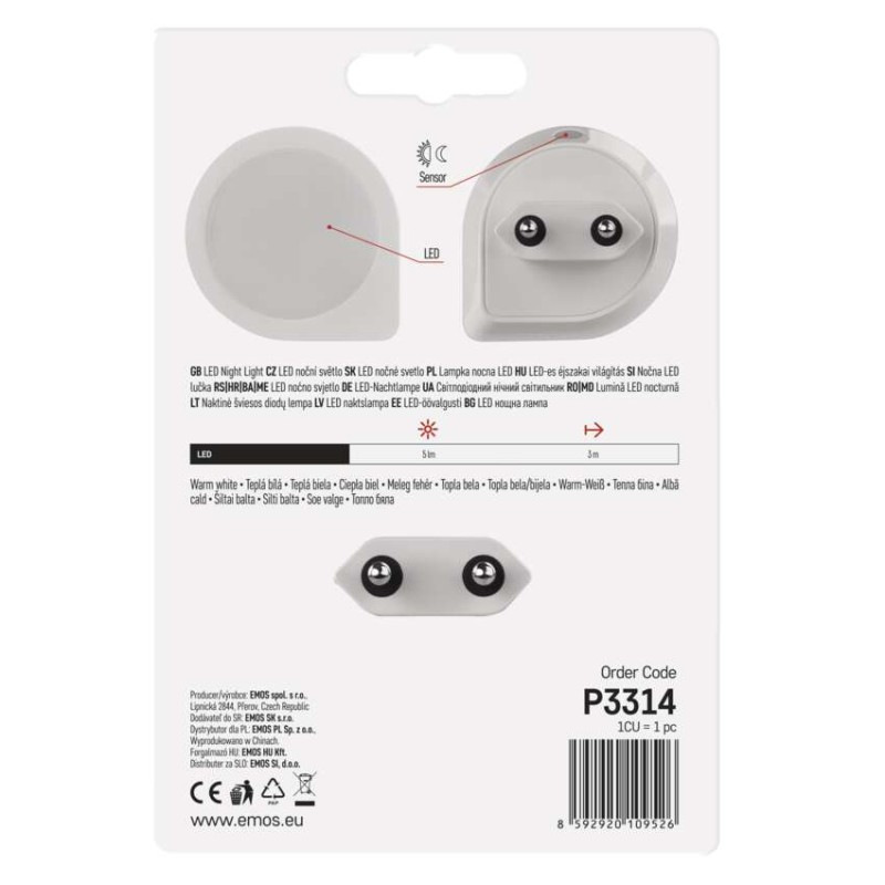 LED nočné svetlo P3314 s fotosenzorom do zásuvky