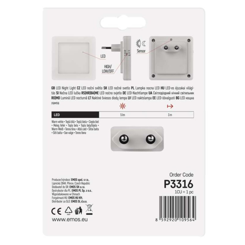 LED nočné svetlo P3316 s fotosenzorom do zásuvky
