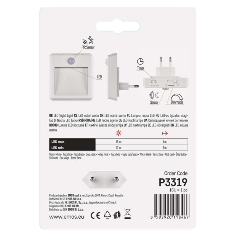 LED nočné svetlo P3319 s pohybovým čidlom do zásuvky