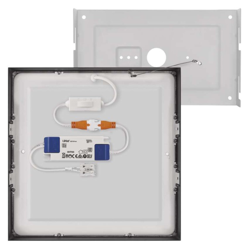 LED prisadené svietidlo, štvorec, čierne, 21W, CCT