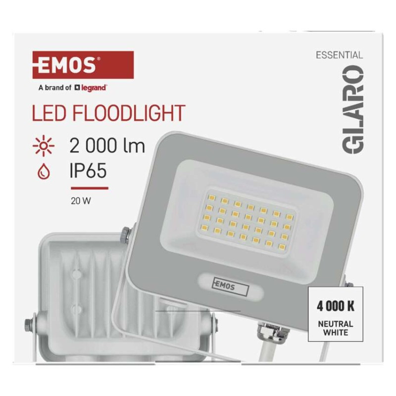 LED reflektor GLARO 20W, biely, IP65, 2000 lm, neutrálna biela
