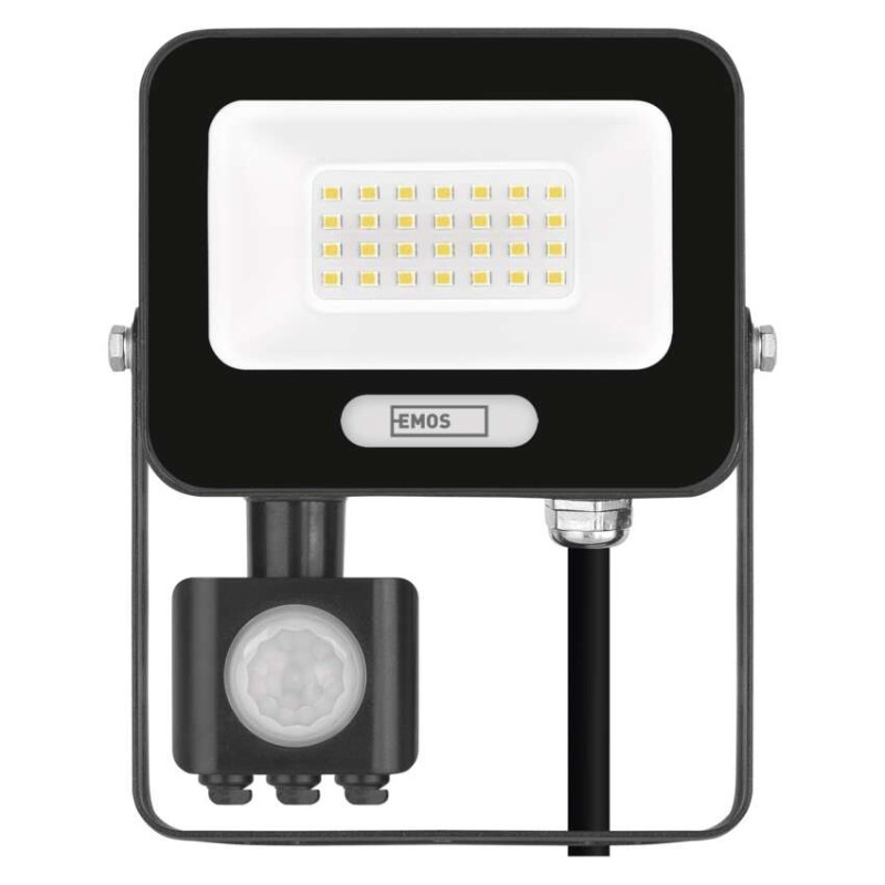 LED reflektor GLARO s pohybovým čidlom, 20 W, čierny, IP54, 2000 lm, neutrálna biela