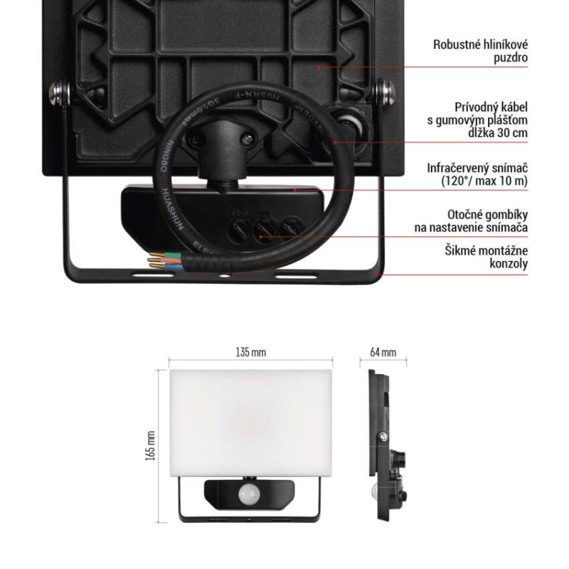 LED reflektor TAMBO so senzorom pohybu, 20 W, 2000 lm, čierny