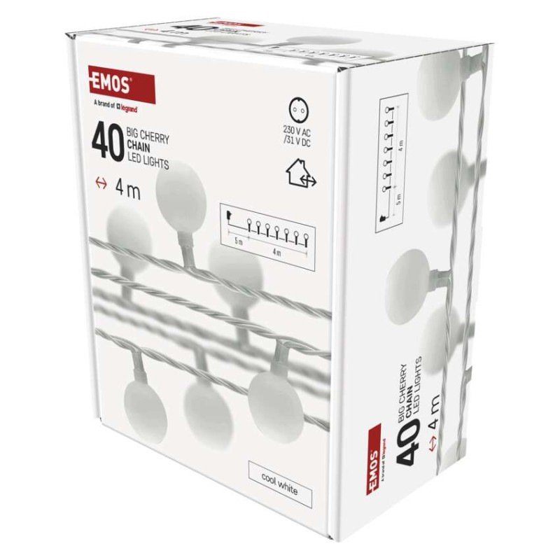LED svet. cherry reťaz – guličky 2,5cm, 4 m, vonkajšia aj vnútorná, studená biela, časovač