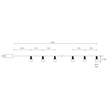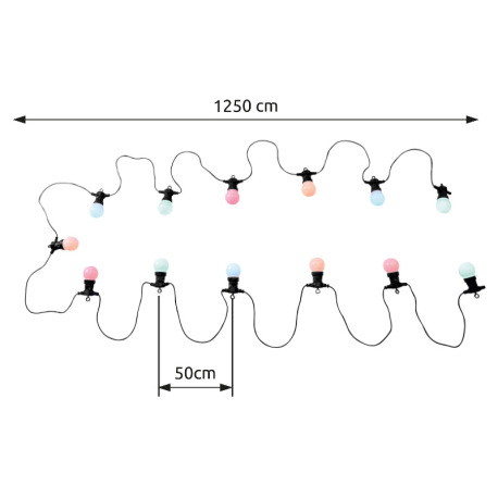 LED svetelná reťaz, čierny plast, plast biely, párty reťaz, pre vonkajšie použitie, IP44, dĺžka kábl