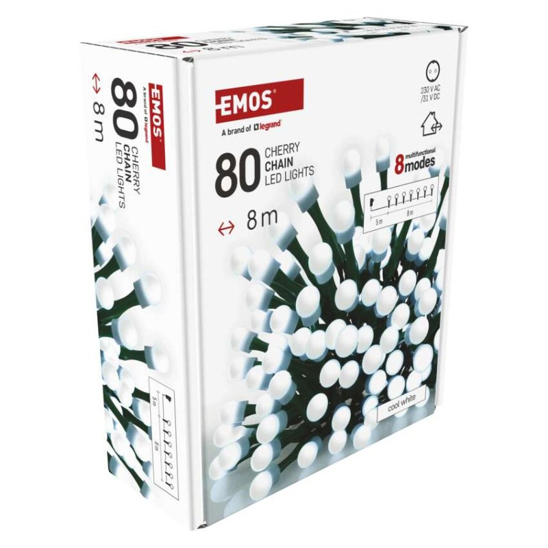 LED vianočná cherry reťaz – guličky, 8 m, vonkajšia aj vnútorná,st. biela,programy,časovač
